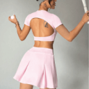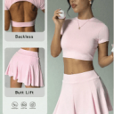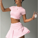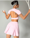 Lounge Sets for Women 2 Piece Round Neck Cropped Tank TopAnd Pleated Mini Skirt 2pcs Set